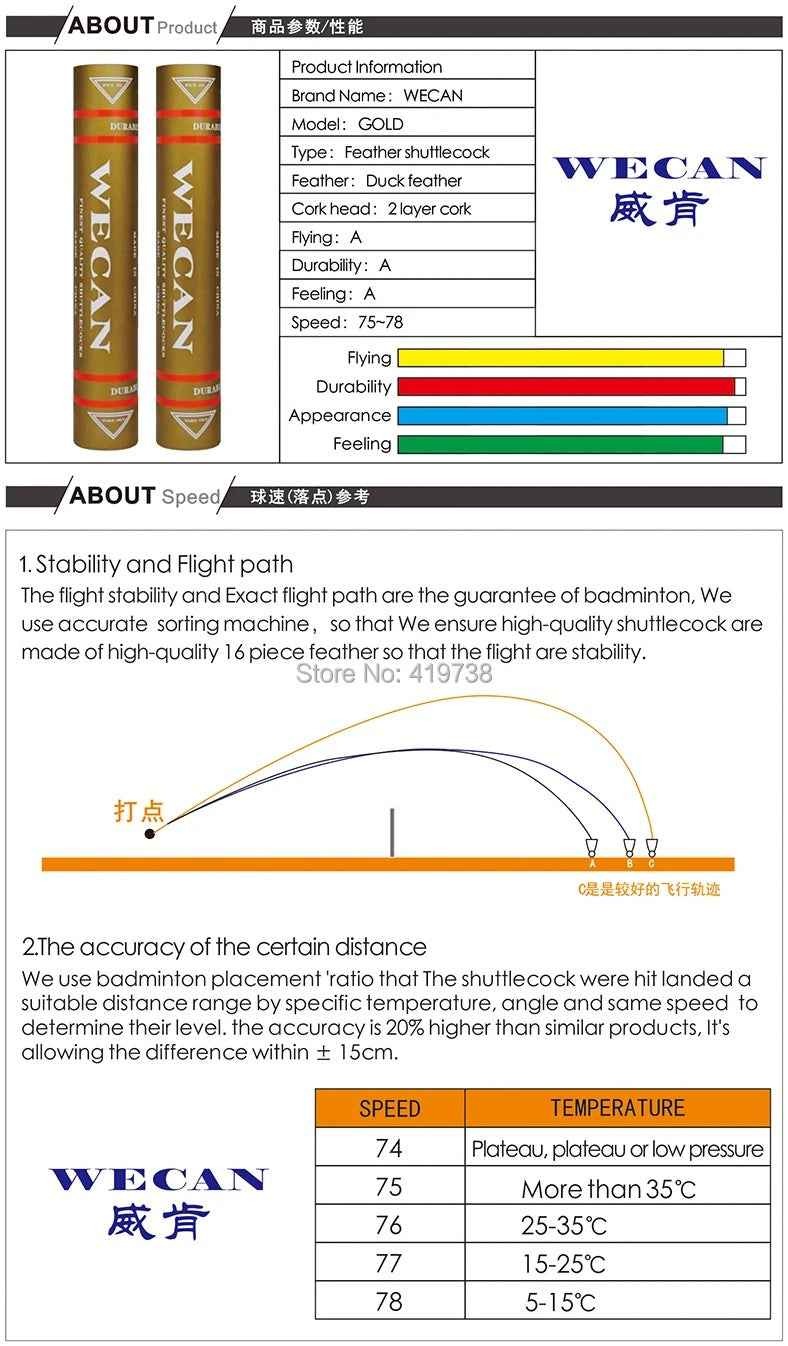 Its superior construction ensures long-lasting use, while maintaining optimal speed and control across different playing conditions. Whether you’re a seasoned athlete or a serious enthusiast, the WeCan Gold shuttle offers a reliable and professional playing experience every time you step onto the court.